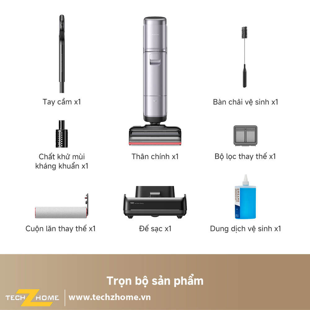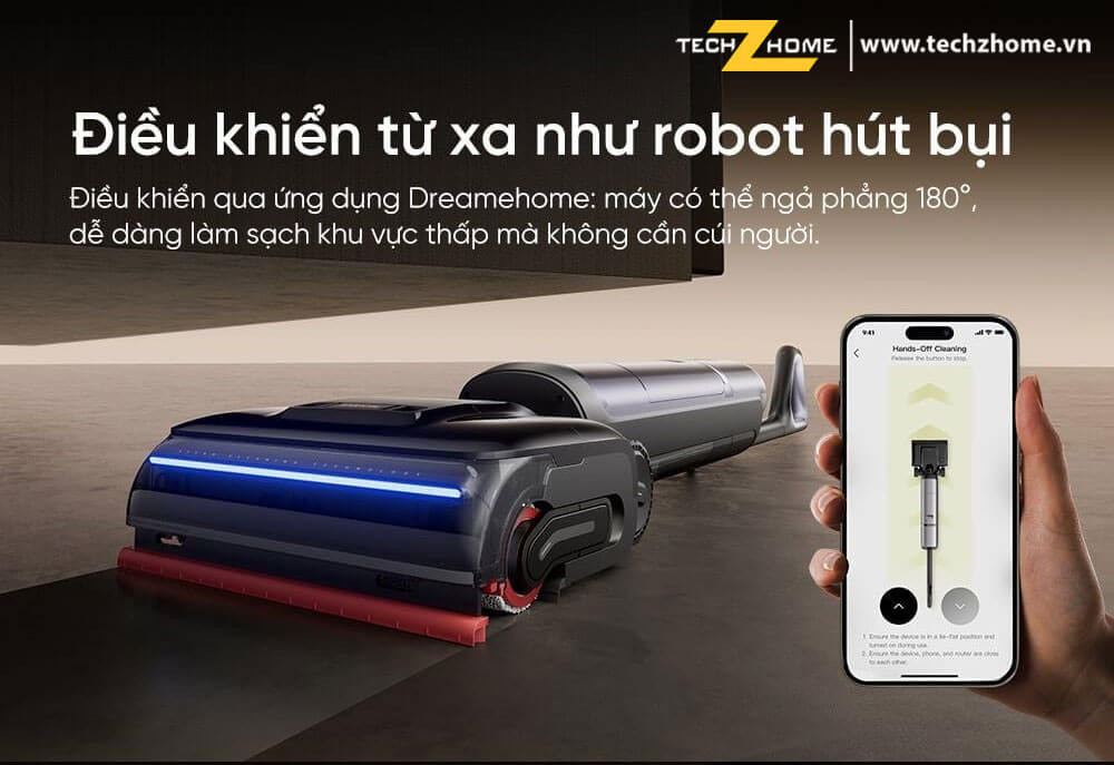 - Giặt con lăn bằng nước nóng 100°C - Sấy khô bằng khí nóng trong 5 phút, nhiệt độ tối đa 90 - Trợ lực di chuyển AI - Gập phẳng 180 độ - Pha nước lau sàn tự động, thông minh theo tỉ lệ tùy theo độ bẩn của sàn, con lăn - Kết nối App Dreame Home |