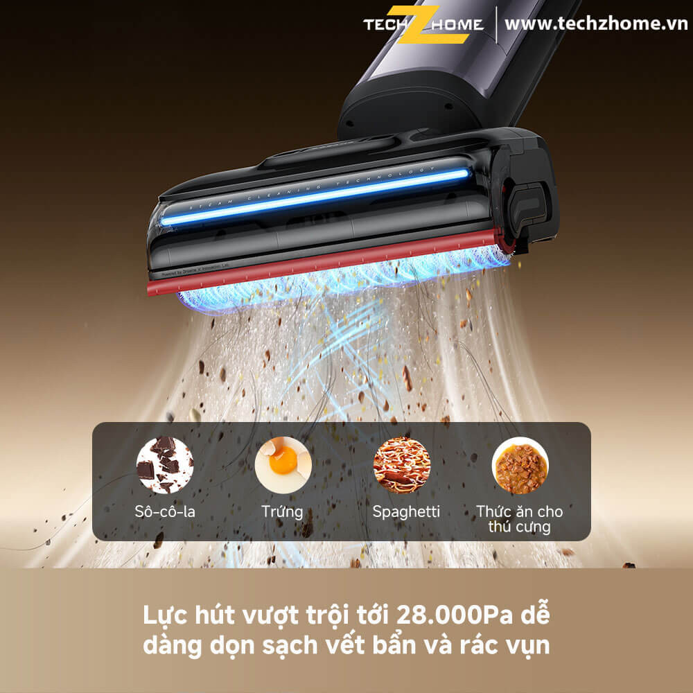 - Lực hút dẫn đầu ngành 28.000Pa, làm sạch cả vết bẩn khô và ướt