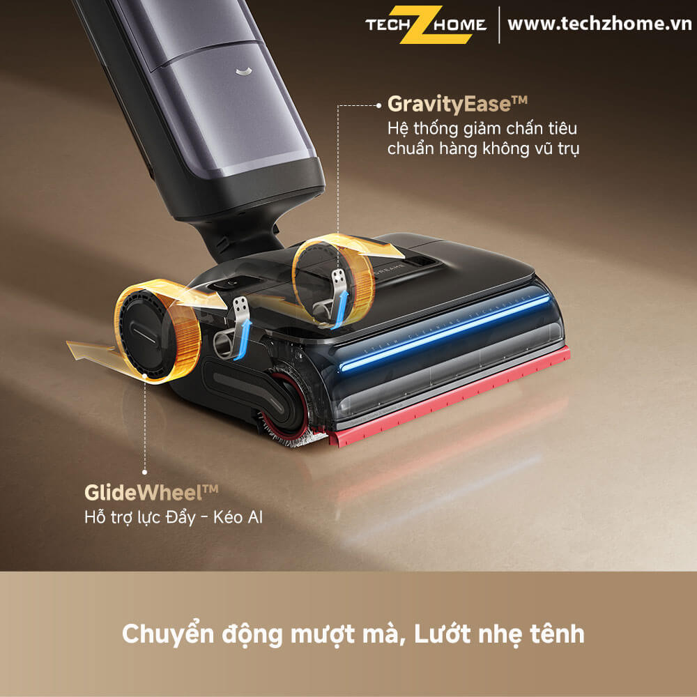 Hệ thống trợ lực bằng mô tơ giúp di chuyển nhẹ nhàng. Công nghệ AI nhận biết chuyển động của tay để trợ lực di chuyển, giúp việc vệ sinh thật dễ dàng, không tốn sức.