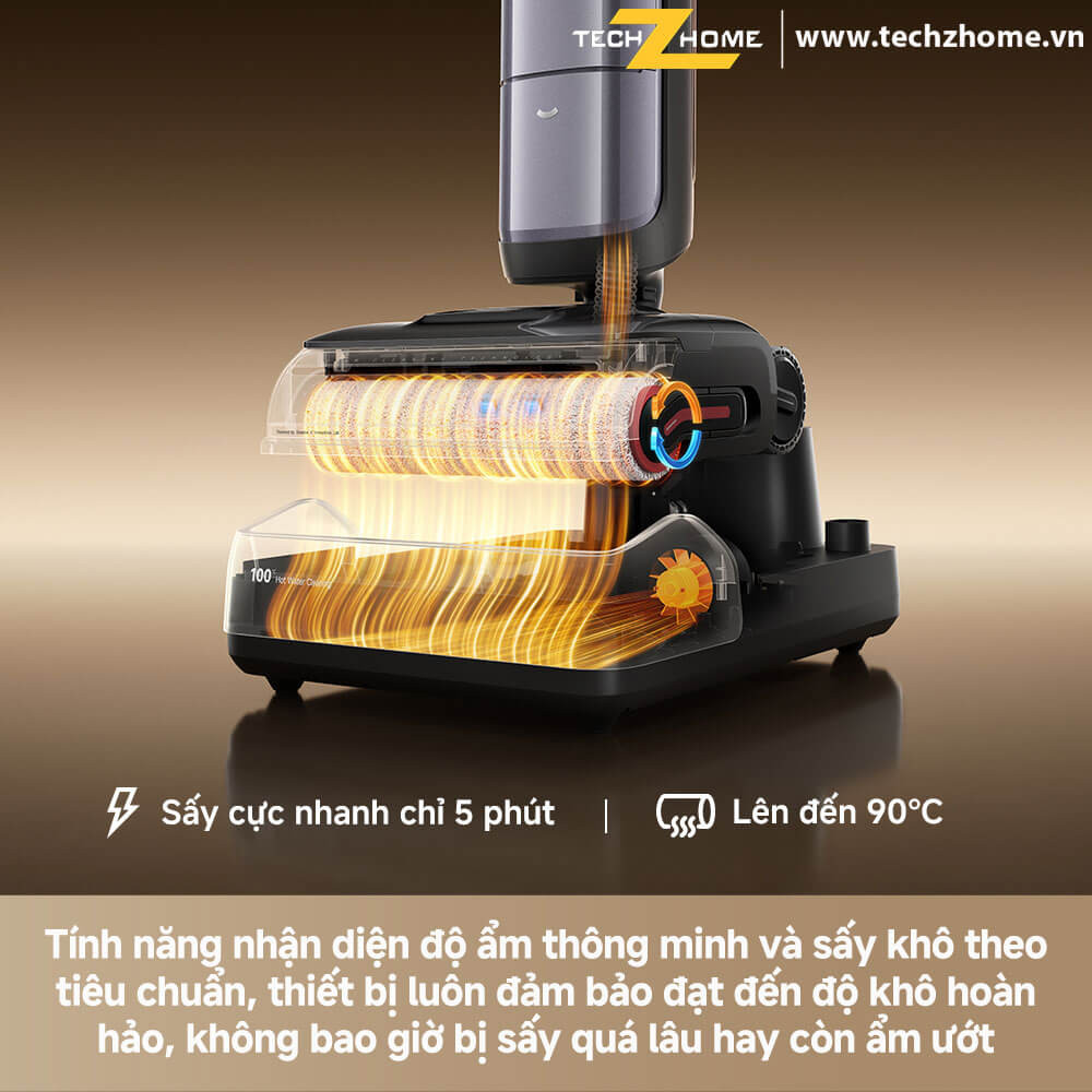 Dựa trên kết quả nhận diện độ ẩm, thuật toán thông minh sẽ tự động điều chỉnh quy trình sấy để đảm bảo mức tiêu thụ năng lượng tối ưu, tránh tình trạng sấy quá nhiệt hoặc chưa khô hoàn toàn. Nếu con lăn bị ẩm trở lại do tác động của môi trường, máy sẽ tự động kích hoạt chế độ sấy lại, mang đến khả năng bảo vệ chống ẩm liên tục và đảm bảo con lăn luôn khô thoáng, sạch mới trong mỗi lần sử dụng.