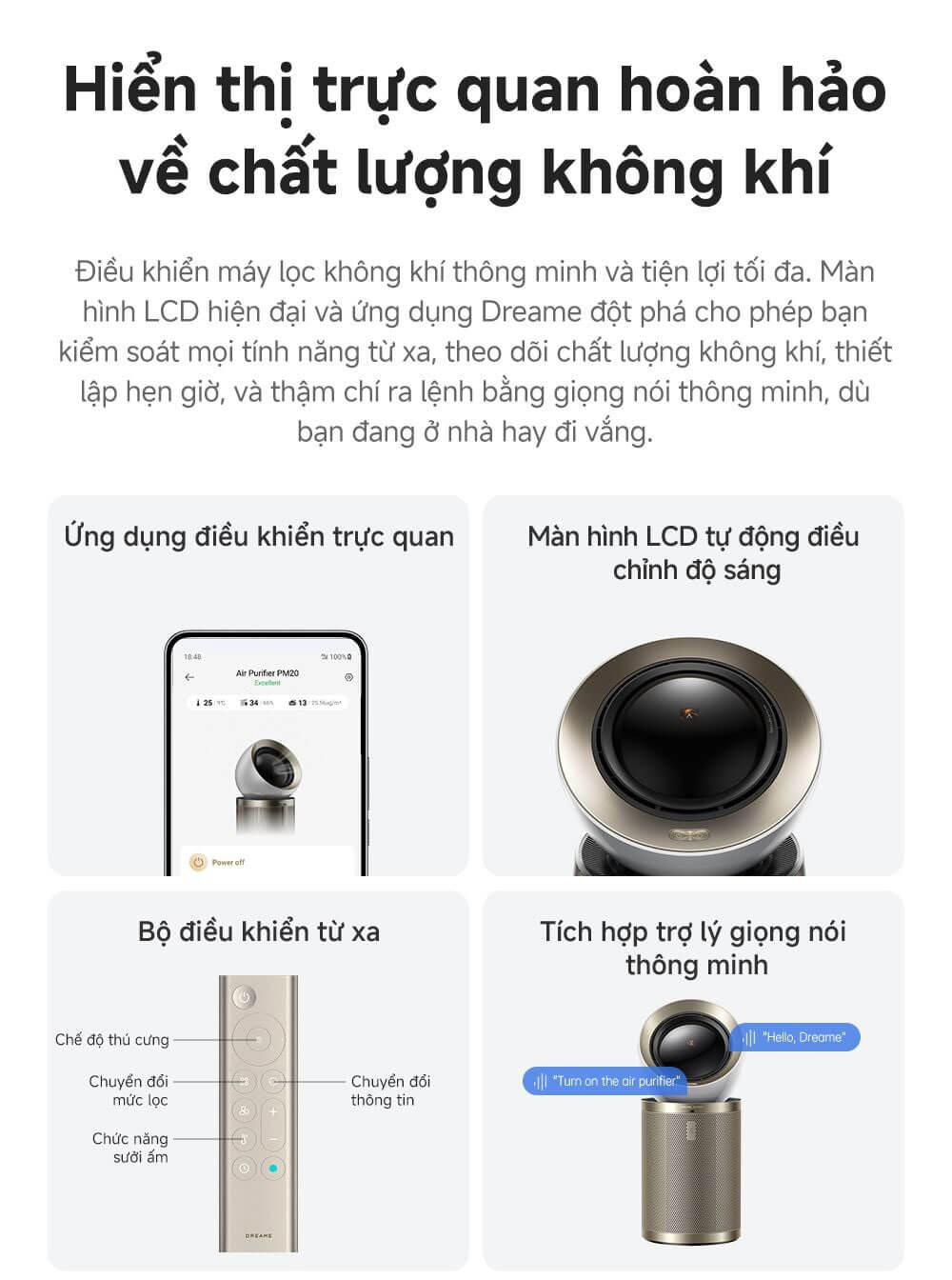 Máy lọc không khí Dreame AirPursue™ PM20 là thiết bị lọc cao cấp, hiện đại, mang đến bạn những luồng khí sạch và mát rượi như ở vùng cao, vừa tăng thêm sự trong lành cho không gian sống, vừa không lo thời tiết dù nóng hay.