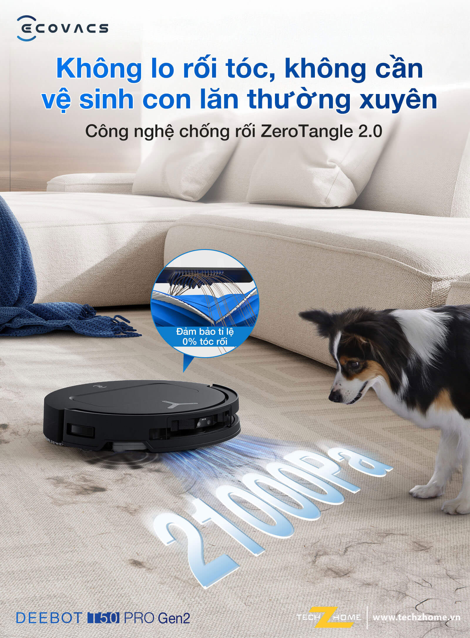 Hệ thống ZeroTangle 2.0 giúp hạn chế tình trạng tóc và lông thú quấn vào chổi chính, giúp robot vận hành trơn tru và giảm nhu cầu bảo trì. Khi phát hiện tình trạng rối, robot sẽ gửi thông báo để người dùng xử lý kịp thời. Nhờ cơ chế chống rối thông minh, robot luôn duy trì lực hút tối ưu trong suốt quá trình hoạt động.