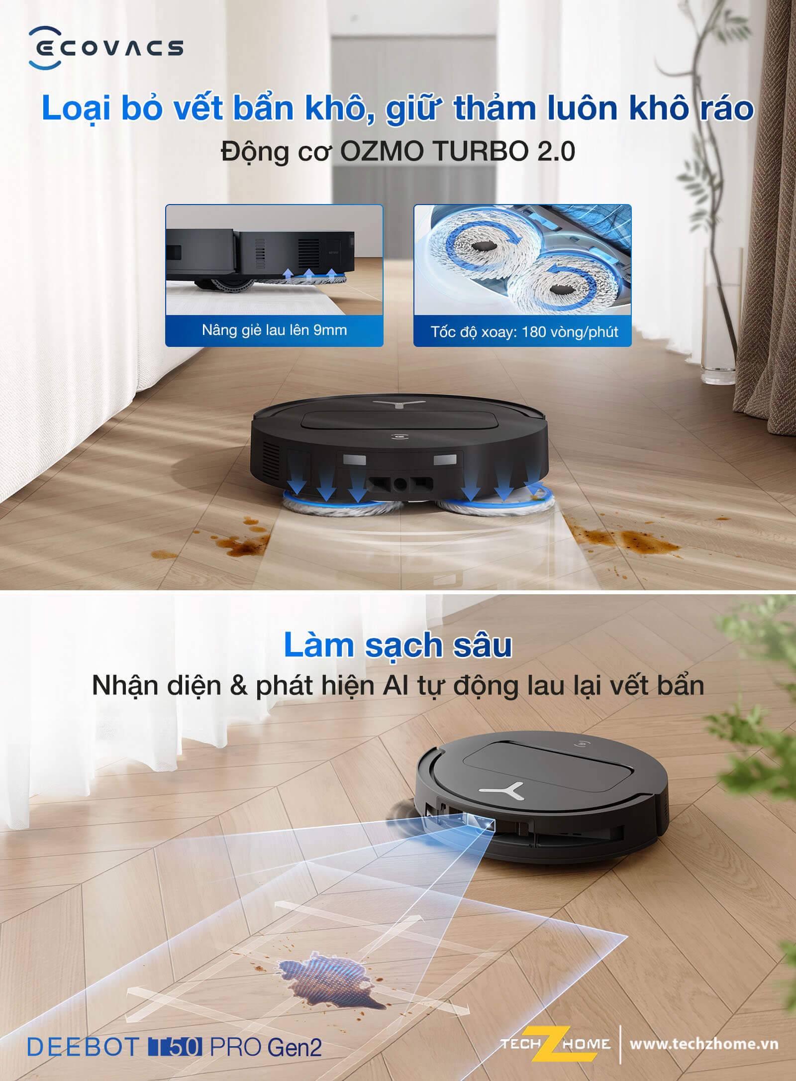 - - Công nghệ lau nhà OZMO Turbo 2.0