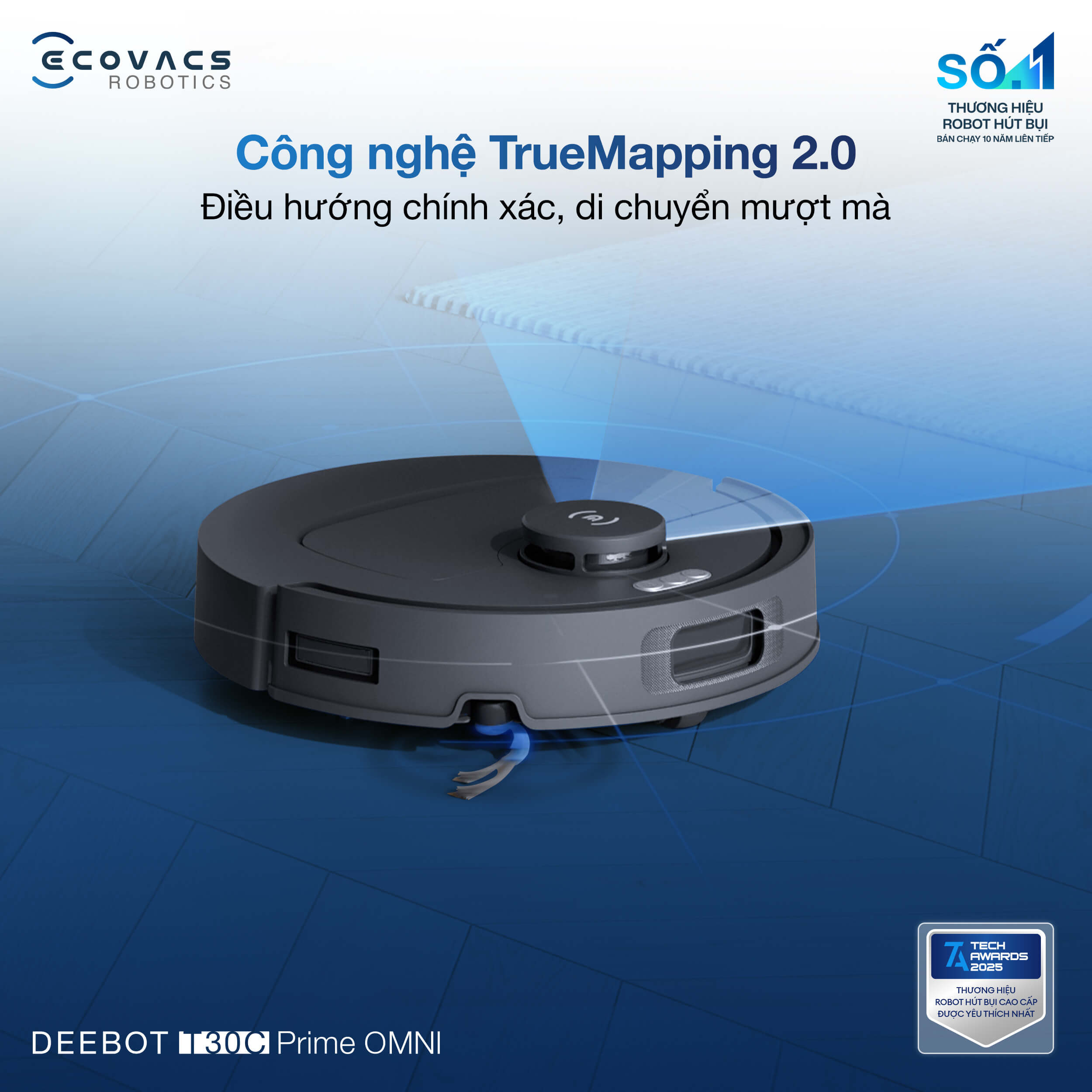 T30C Prime Omni hỗ trợ lập bản đồ nhanh bằng TrueMapping 2.0, nhận diện vật cản chính xác nhờ TrueDetect, di chuyển linh hoạt qua vật cản cao tới 20mm. Người dùng có thể dễ dàng điều khiển qua ứng dụng ECOVACS HOME, sử dụng chế độ làm sạch tại điểm khi cần thiết. Pin 5200mAh cho thời gian hoạt động lên đến 220 phút, đi kèm trạm OMNI tự động làm sạch, tối ưu trải nghiệm sử dụng hằng ngày.