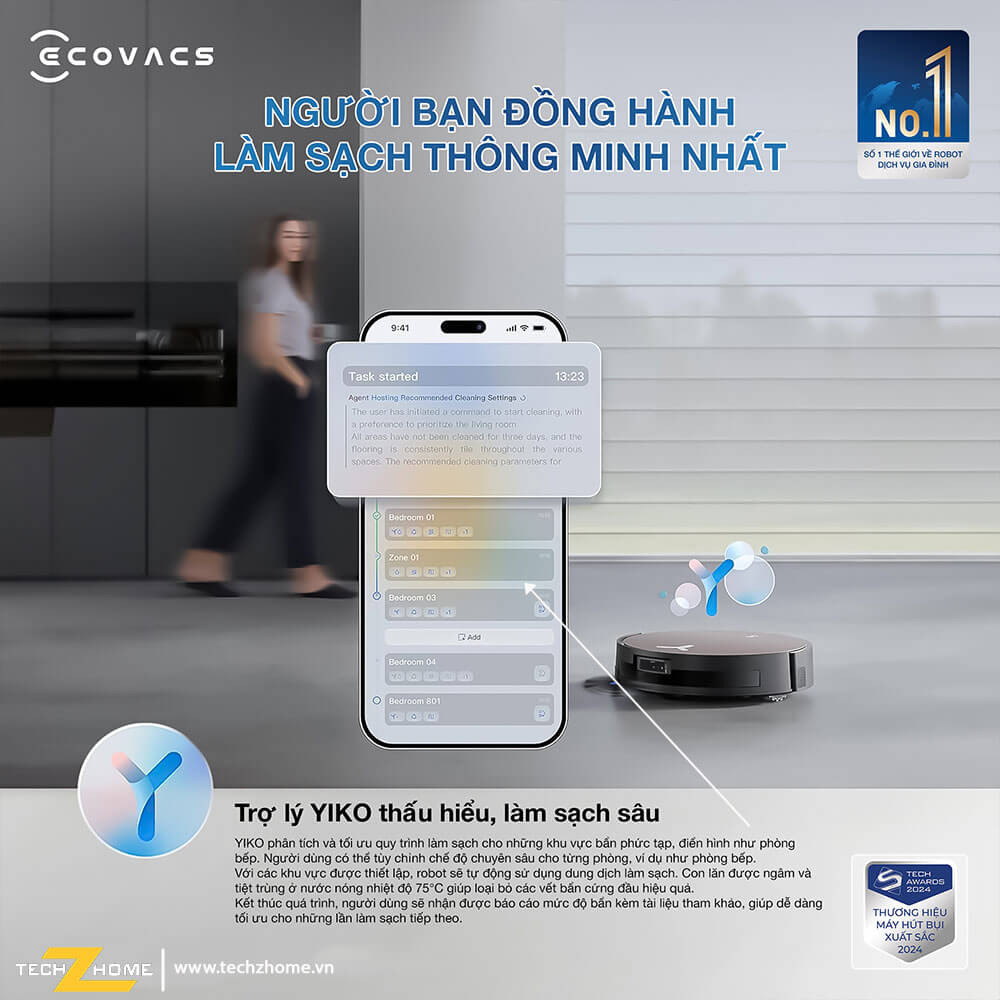 Kết quả là một hệ thống quản lý làm sạch hoàn toàn tự động, biết tư duy sâu. Từ khi thiết lập ban đầu đến quá trình vận hành hàng ngày, YIKO giúp Ecovacs DEEBOT X11 OmniCyclone phát huy tối đa khả năng mà không cần bạn phải can thiệp thủ công.