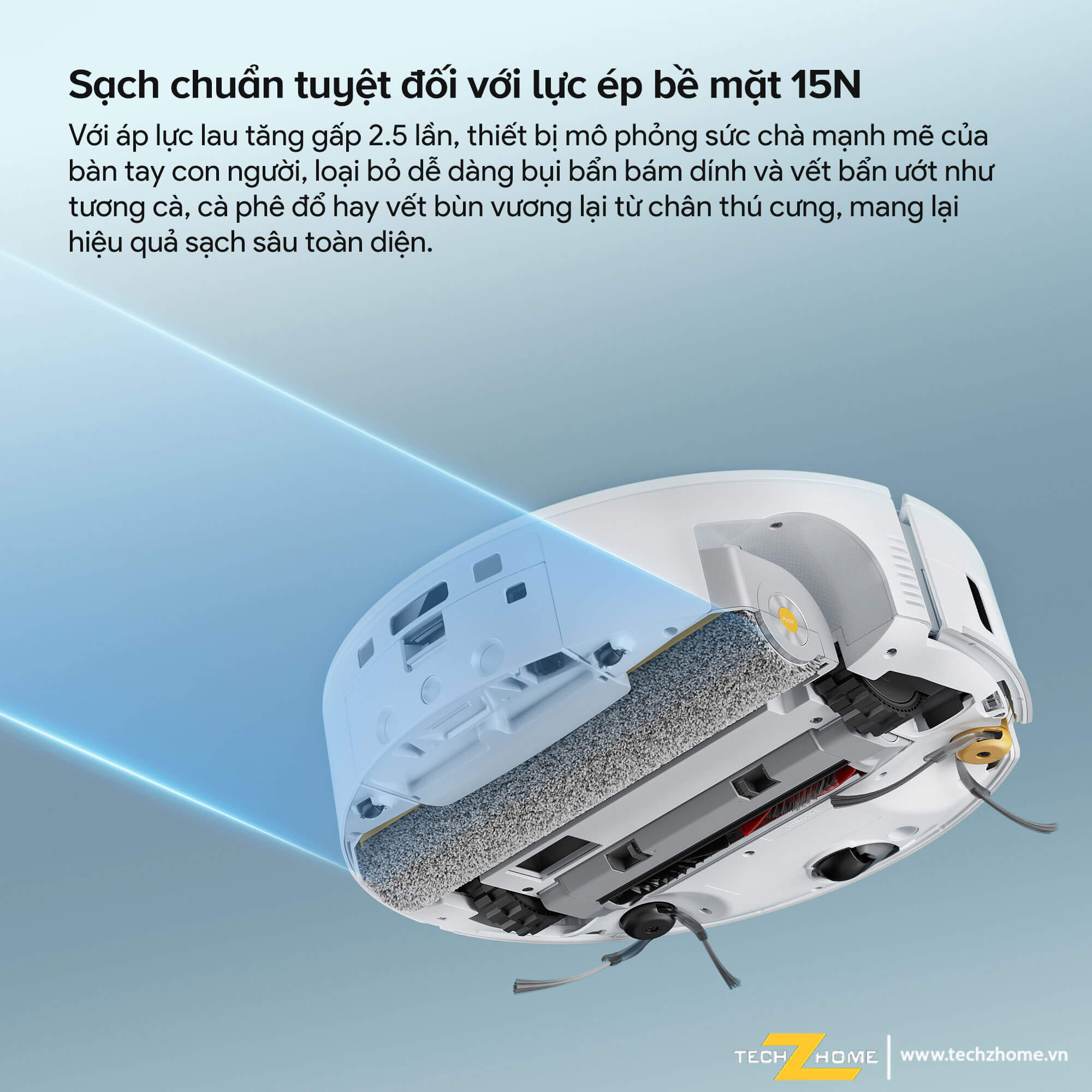 - Với áp lực lau tăng gấp 2.5 lần, thiết bị mô phỏng sức chà mạnh mẽ của bàn tay con người, loại bỏ dễ dàng bụi bẩn bám dính và vết bẩn ướt như tương cà, cà phê đổ hay vết bùn vương lại từ chân thú cưng, mang lại hiệu quả sạch sâu toàn diện.