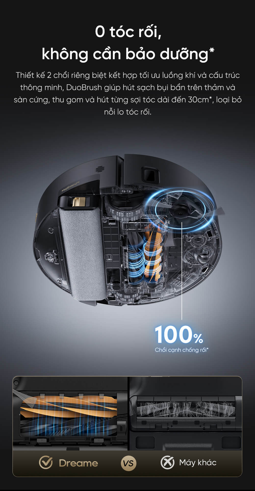 - Lực hút Vormax™ 25.000Pa: Dễ dàng hút sạch các loại mảnh vụn khác nhau như giấy, tóc và cát mèo trên mọi bề mặt.