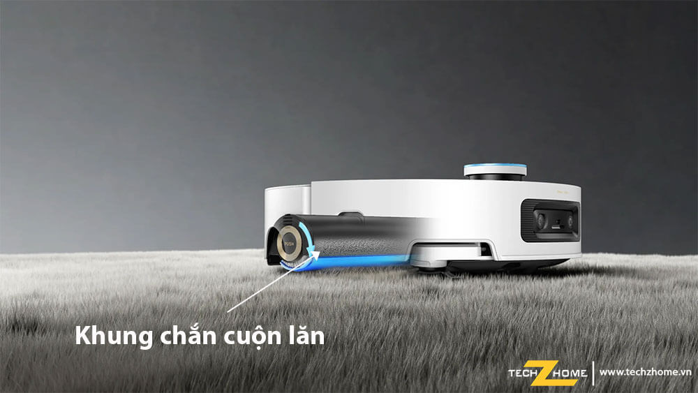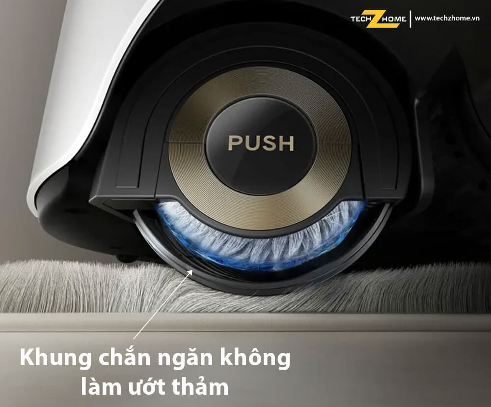 Khung chắn cuộn lăn thông minh tự động che chắn cuộn lăn khi robot lên thảm, ngăn thảm bị ẩm và loại bỏ nguy cơ phát sinh mùi hôi triệt để.