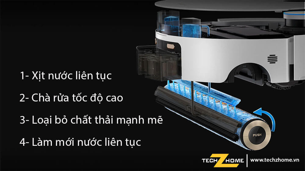 - Tự động thêm nước lau sàn: Hệ thống tự động châm và pha trộn chính xác dung dịch vệ sinh với nước, giúp giẻ lau luôn được khử khuẩn tối ưu mà không cần bạn can thiệp.