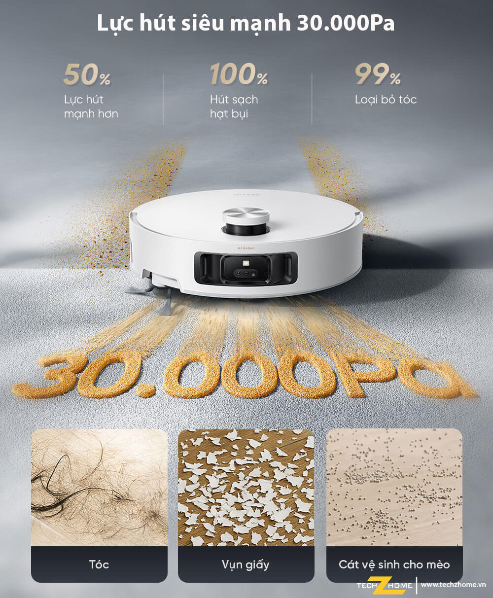 - Lực hút Vormax mạnh mẽ 30.000Pa