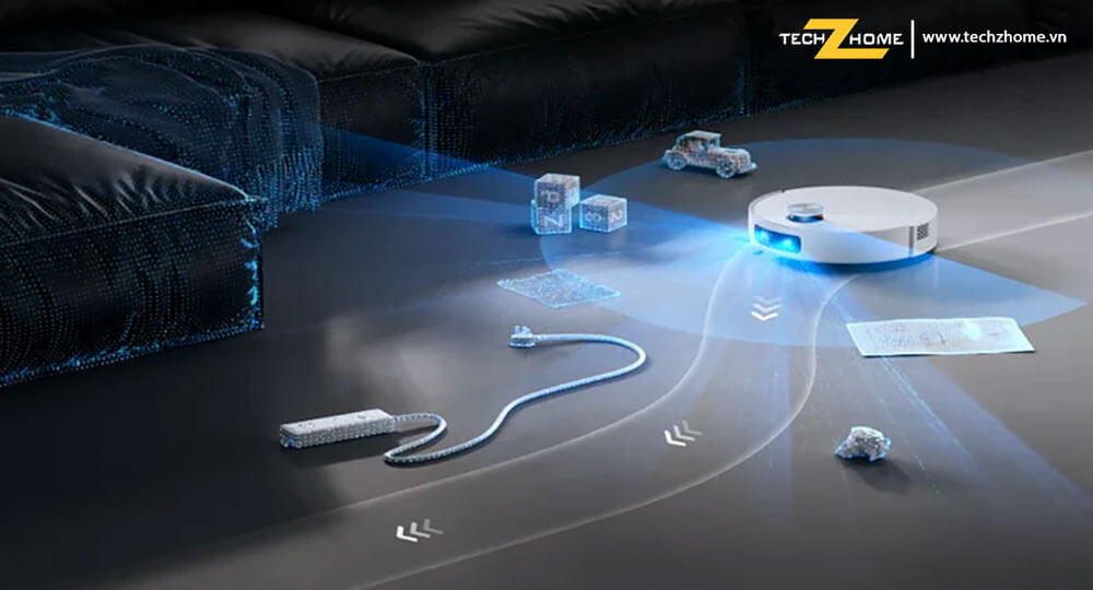 Nhờ sự kết hợp của Ánh sáng cấu trúc 3D, đèn LED và camera hành động AI, robot có thể nhận diện chính xác hơn 240 loại vật cản và thấy rõ bụi bẩn ở nơi tối, mang lại hiệu quả làm sạch an toàn và vượt trội.